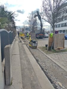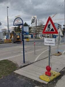 Die Aufgrabungen des Fußgängerweges betreffen auch einen Teil der Perfektastraße.